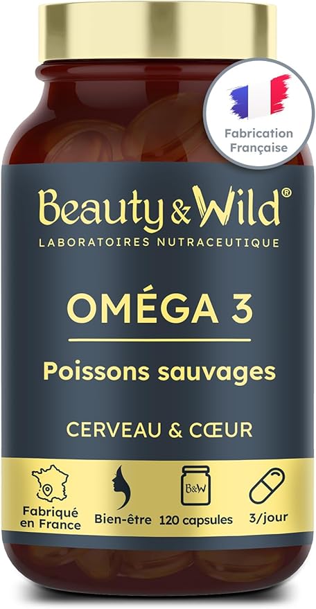 Capsules d'OMÉGA 3-2000mg d’Huile de Poissons Sauvages, Riche en acide aminés EPA/DHA, Santé du Cœur, Cholestérol, Cerveau, Idéal Musculation, Fitness, 120 capsules d'oméga 3 - Beauty&Wild