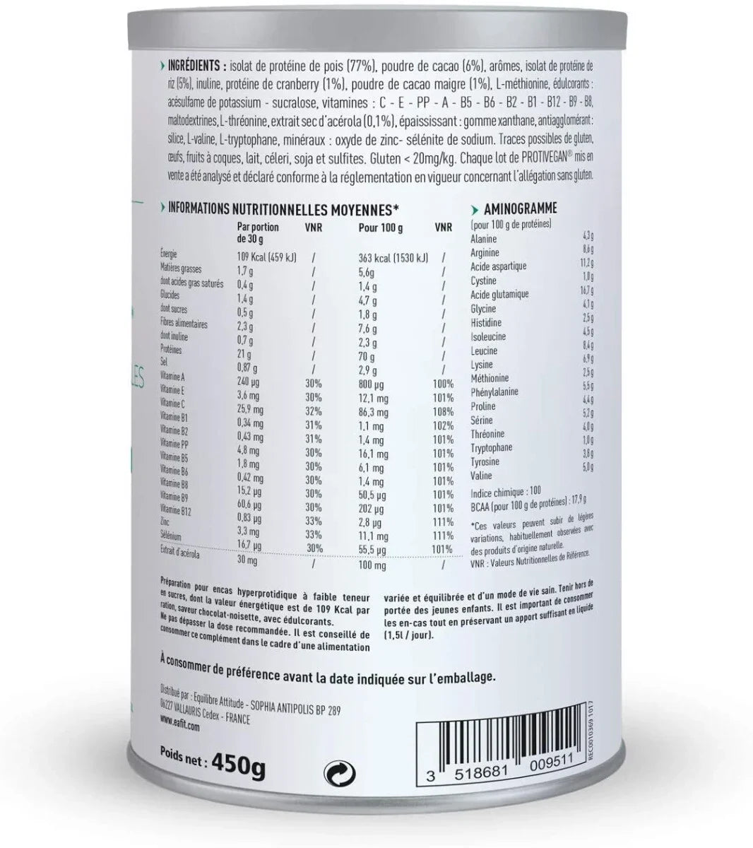 - de la protéine de pois, riz et cranberry qui constituent 3 sources d’acides aminés essentiels.