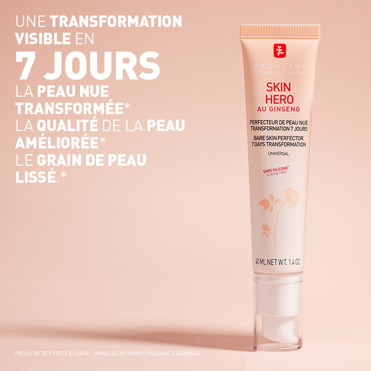 SKIN HERO : votre peau nue, comme parfaite instantanément, encore plus belle demain ! Ce soin perfecteur non teinté, sans silicone*, sublime...