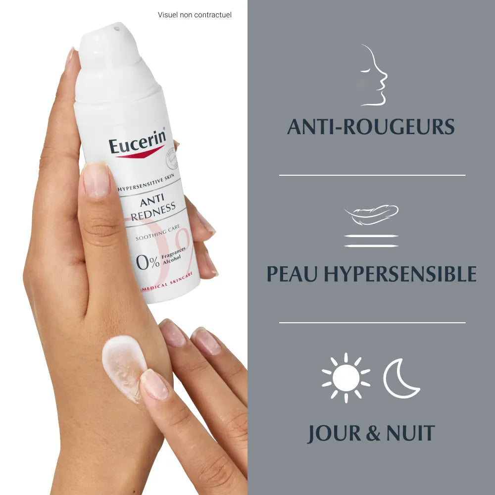 EUCERIN AntiROUGEURS Soin Apaisant a été spécialement développé pour les peaux qui ont une tendance aux rougeurs et à l'hypersensibilité cutanée.