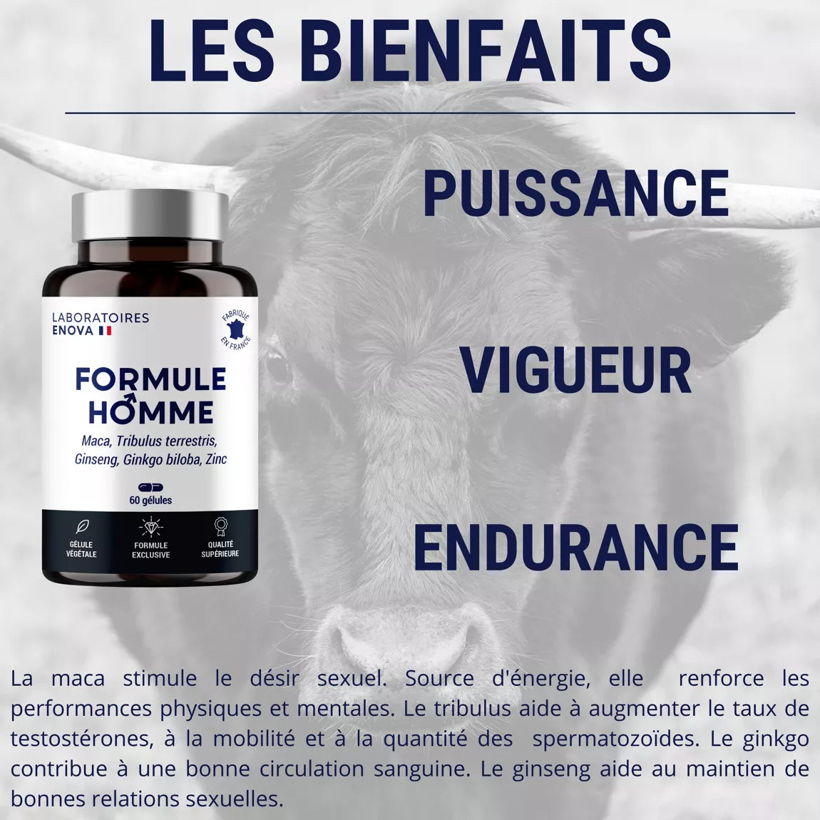 💪 RETROUVEZ VOTRE ENVIE : Maca, Ginseng, Tribulus Terrestris, Ginkgo Biloba, Zinc vous aideront à retrouver votre envie sur la durée.