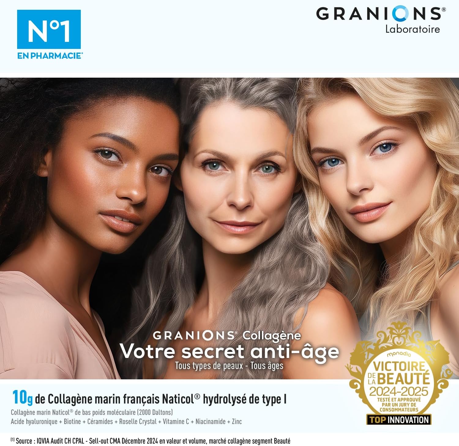 • 10g de collagène marin de type I Naticol, hydrolysé sous forme de peptides de bas poids moléculaire <2000 Daltons pour une assimilation optimale des résultats visibles sur la réduction des rides, l'hydration, la fermeté et l'éclat de la peau.
