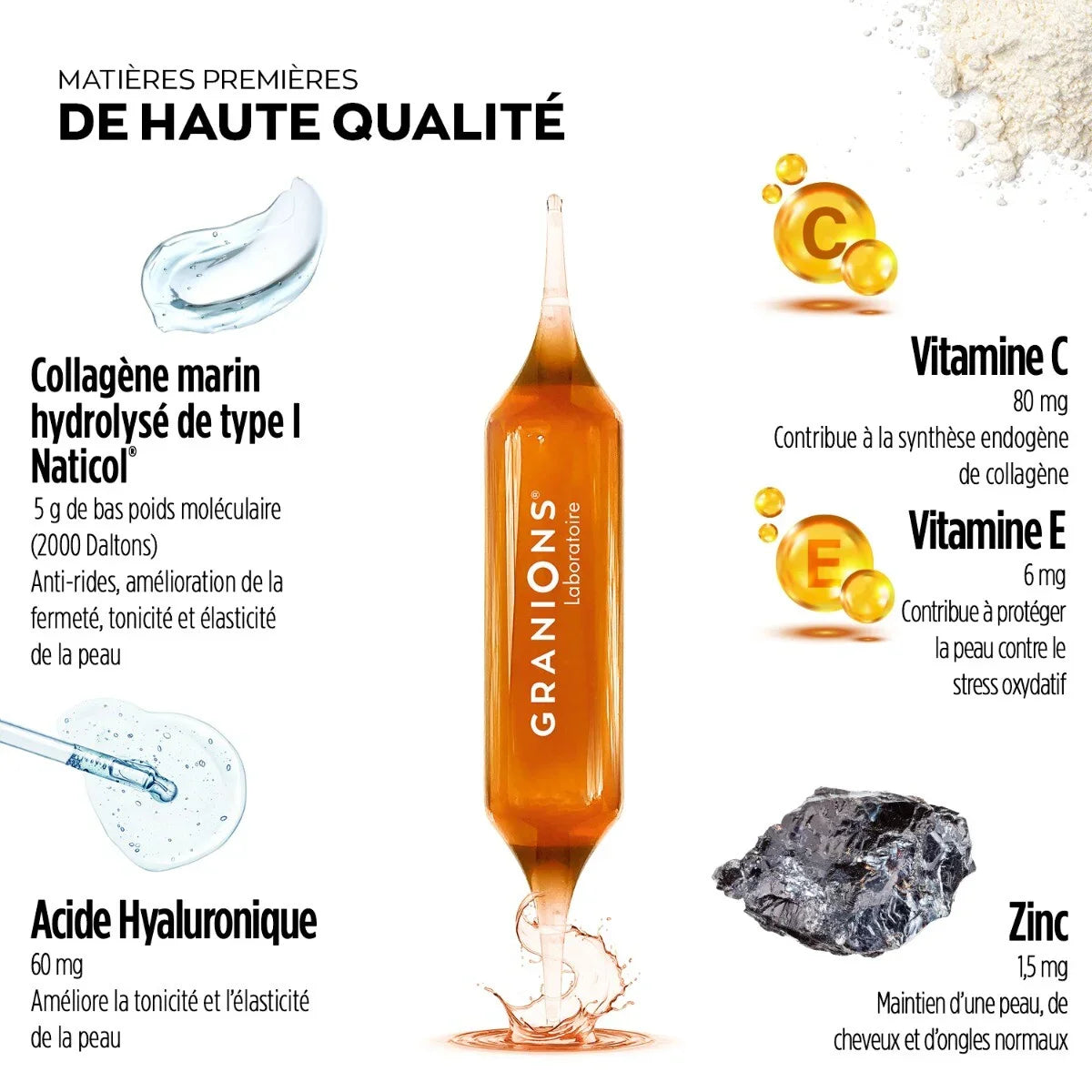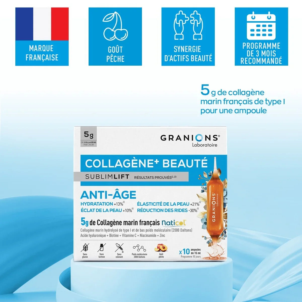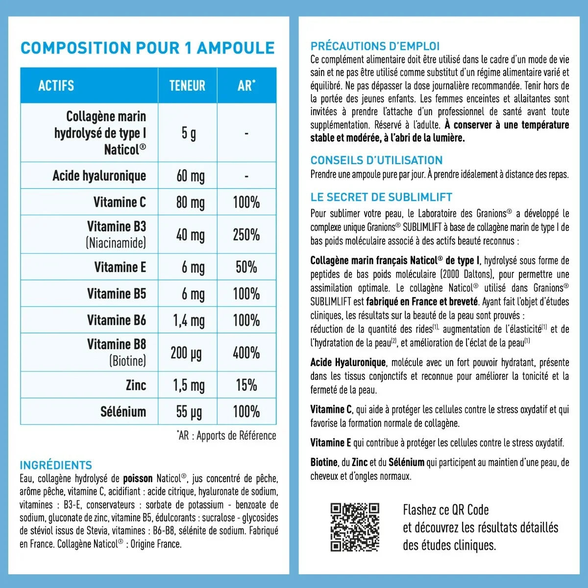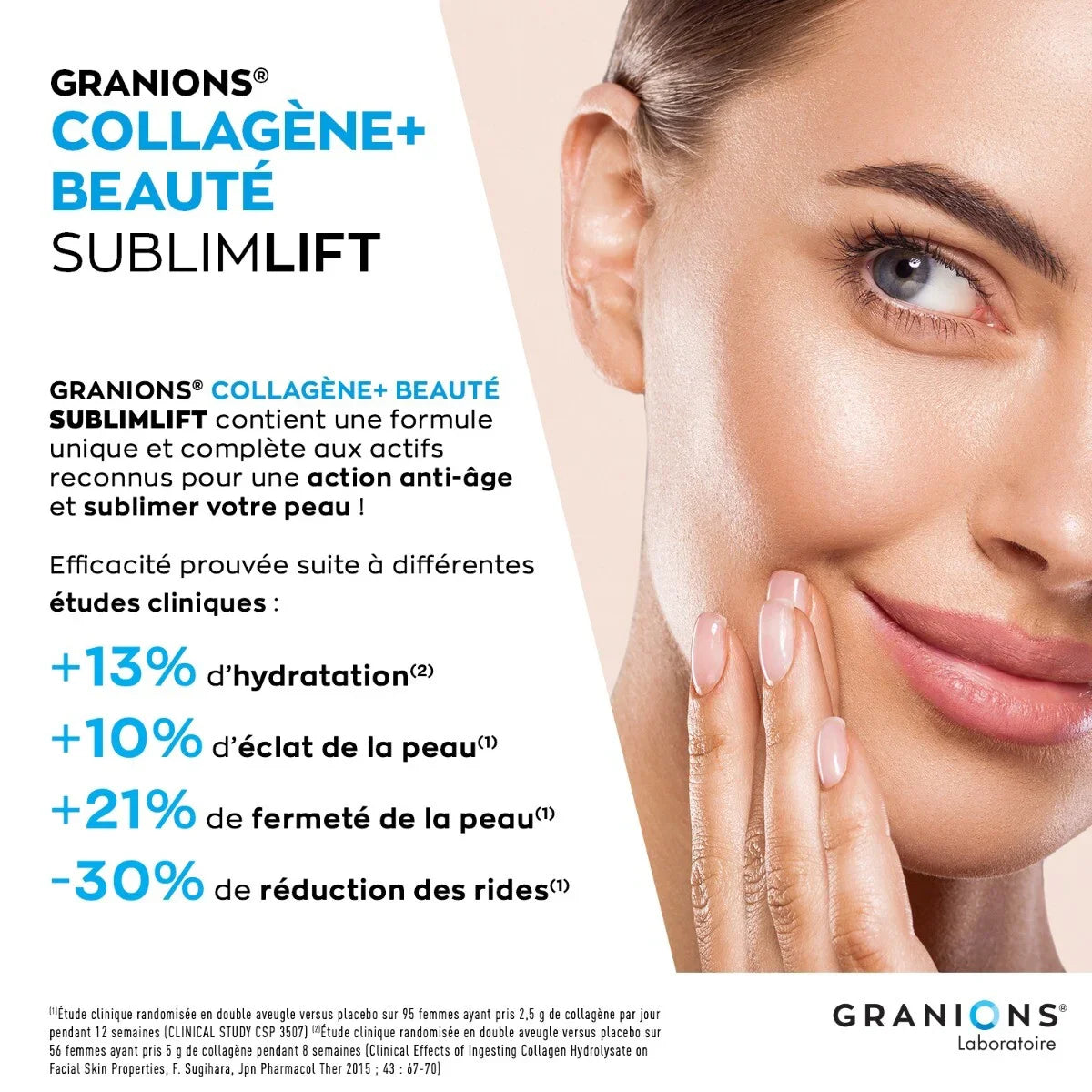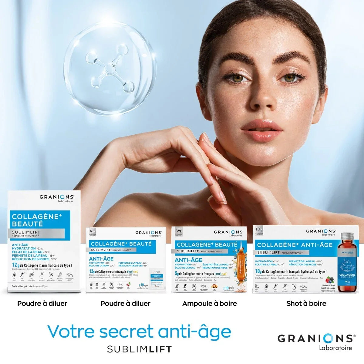 Plus d’information Qu’est-ce que Granions® Collagène+ Beauté Sublimlift ? Granions Collagène+ Beauté Sublimlift est un complément alimentaire en format ampoule...