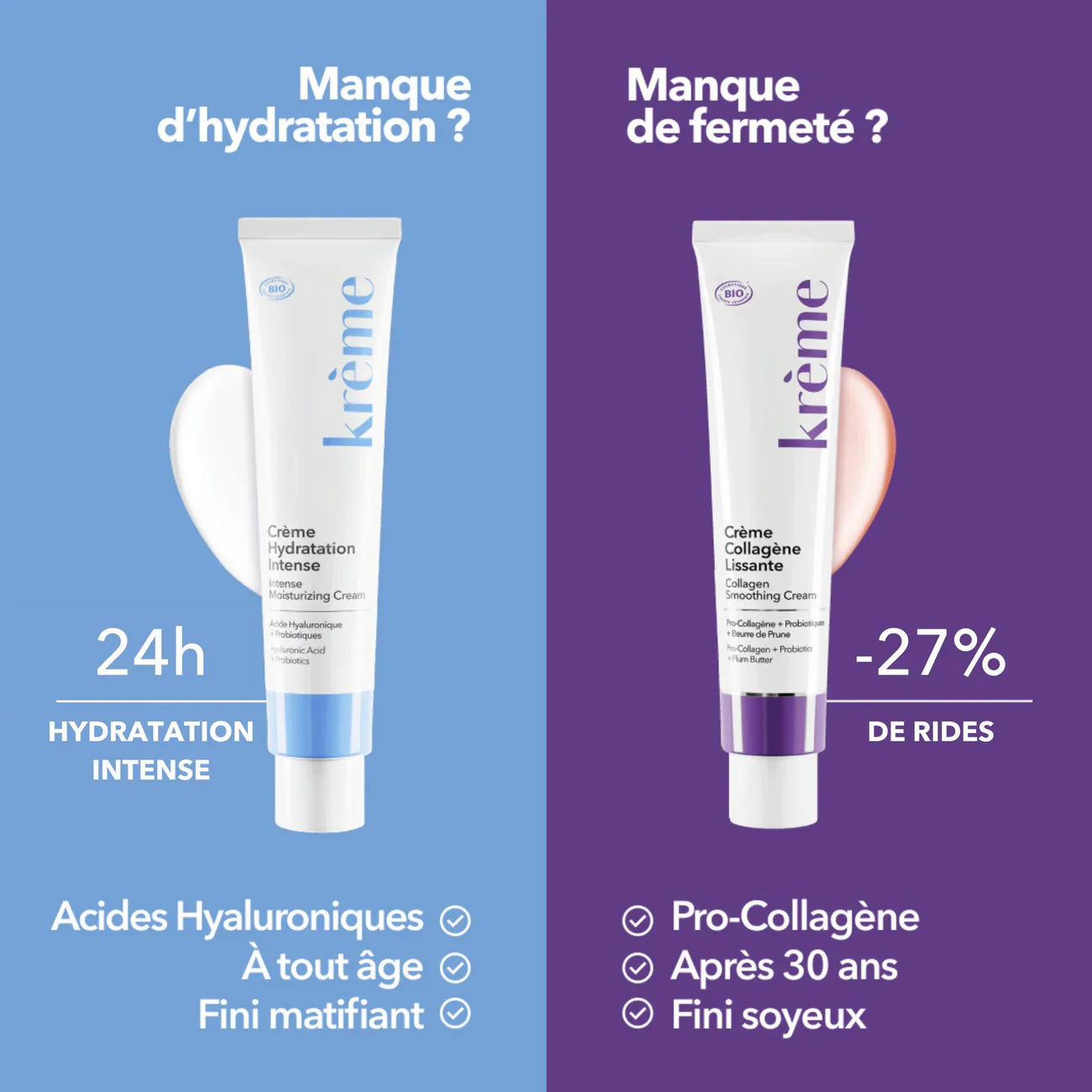 La Crème Hydratation Intense est une crème hydratante best-seller à l’acide hyaluronique et aux probiotiques. Sa formule naturelle baigne la peau d'hydratation, la repulpe et la rééquilibre. Une texture fraîche et fondante qui pénètre en un instant et laisse un fini velouté sur la peau.