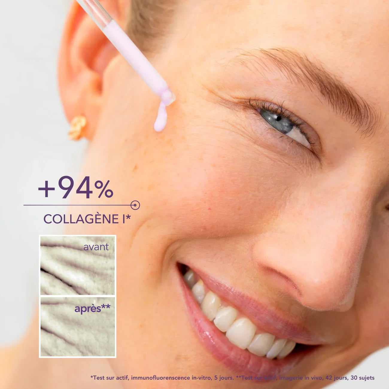 Le Sérum Collagène Anti-Rides est particulièrement adapté aux peaux sensibles et réactives qui dès 30 ans sont en quête d'une correction anti-ride intense.