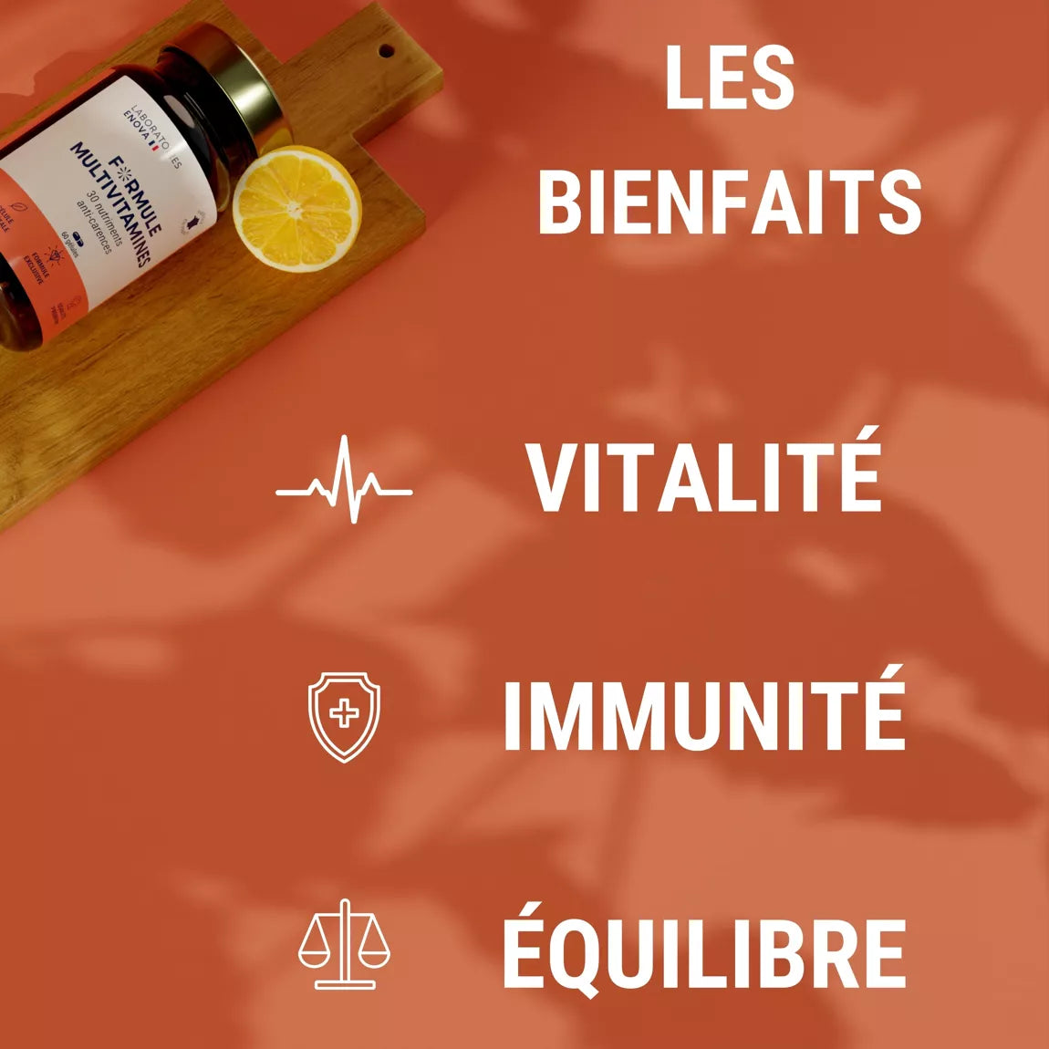 ⚠️ LES RISQUES DES CARENCES : les carences alimentaires exposent à de nombreux désagréments : fatigue chronique, dysfonctionnement du système immunitaire, sautes d’humeur… Formule Multivitamines est votre allié pour vous aider à retrouver votre équilibre.