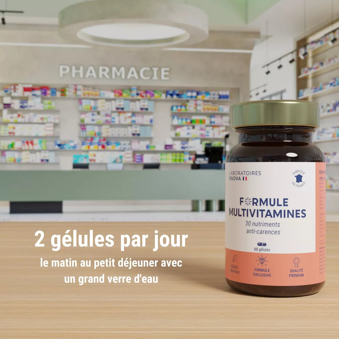 🏆 COMMENT UTILISER FORMULE MULTIVITAMINES ? Formule Multivitamines est à utiliser sous forme de cure saisonnière (30 jours) ou de cure de fond (plusieurs mois). Les 4 clés de la réussite de votre cure Formule Multivitamines : 1️⃣ Surveillez votre alimentation en évitant les aliments gras ou sucrés 2️⃣ Pratiquez une activité physique régulière 3️⃣ Fixez vos heures de coucher et de réveil pour un sommeil optimal 4️⃣ Prenez 2 gélules de Formule Multivitamines avec un verre d’eau, chaque matin.