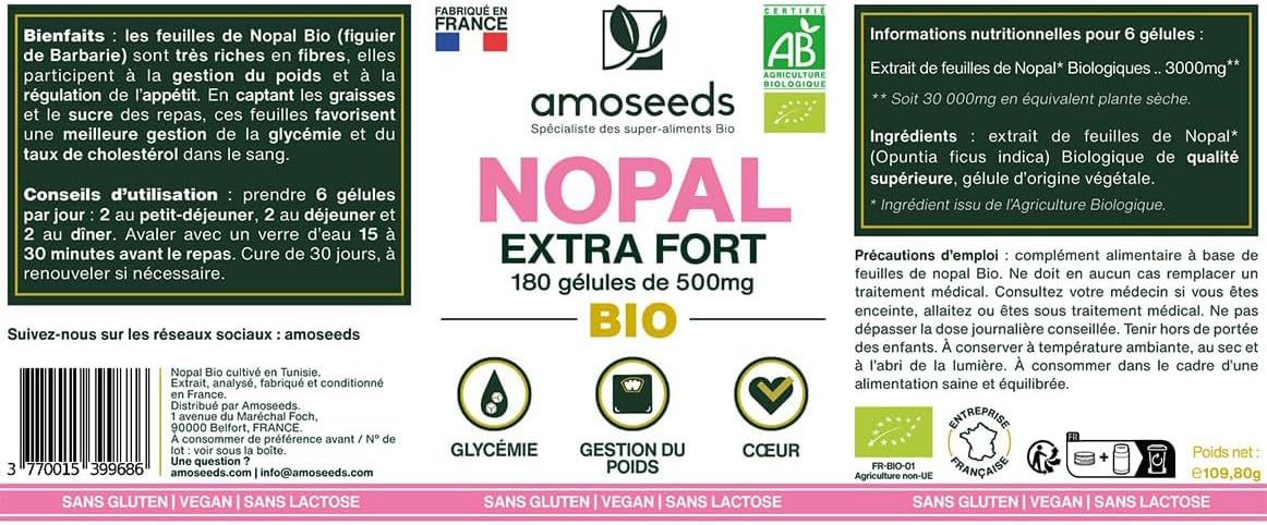 Nopal Bio Extra Fort | Formule Puissante | 180 Gélules Vegan | Qualité Supérieure