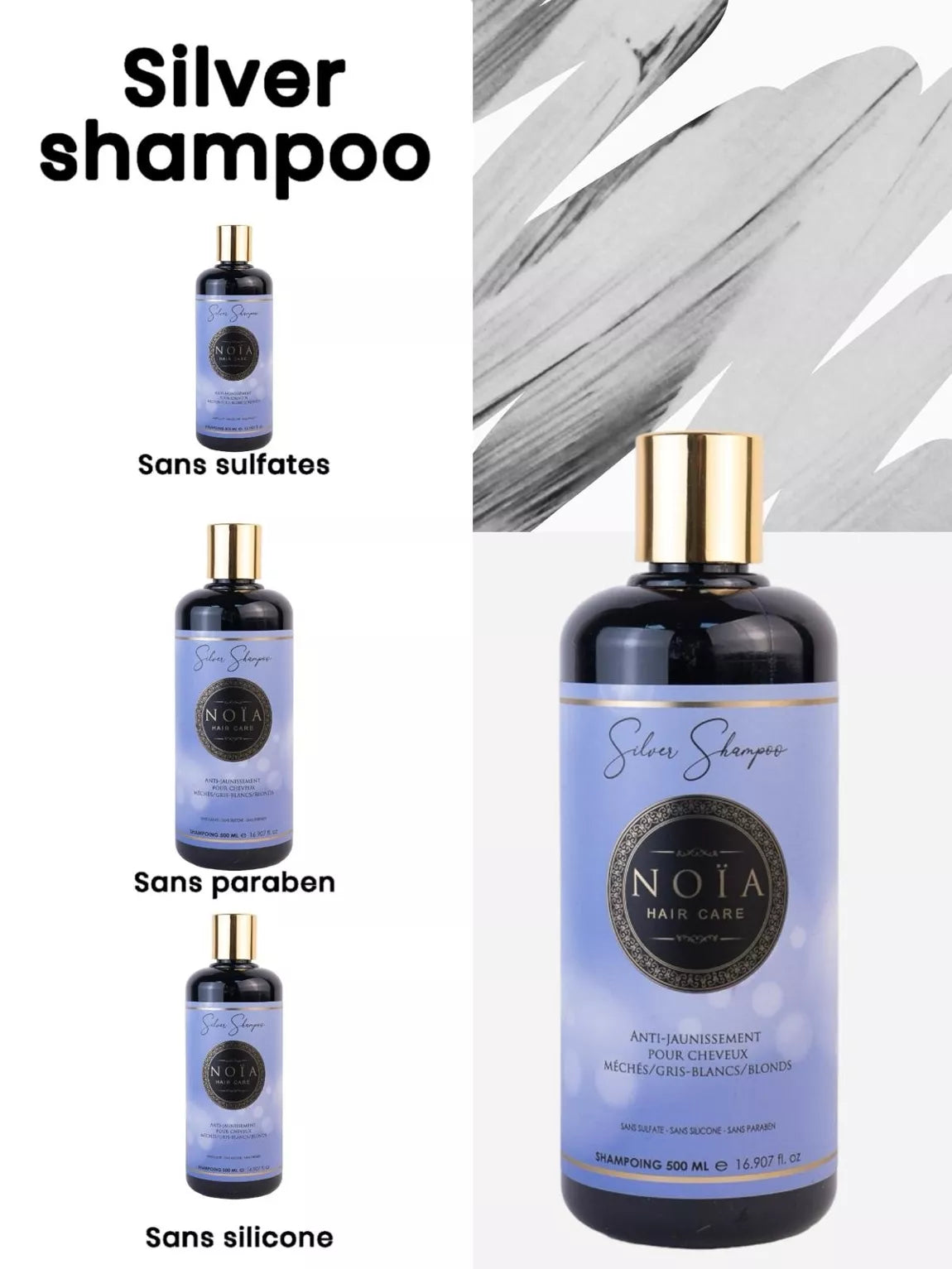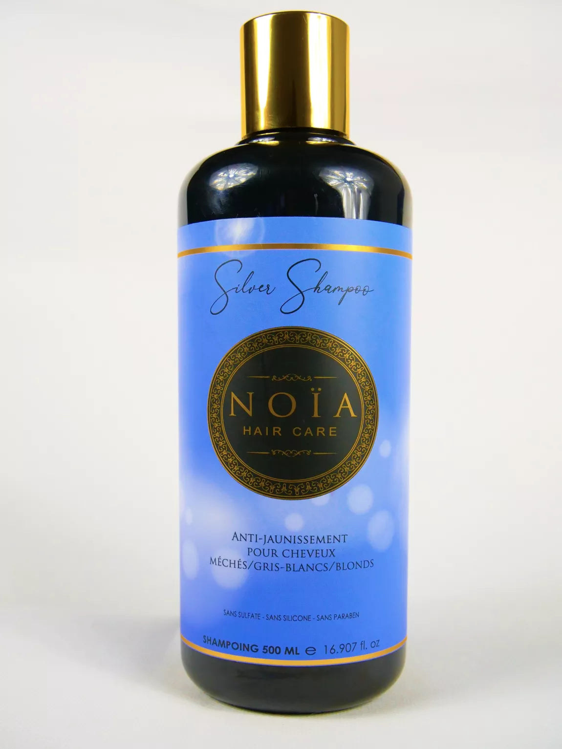 Le Shampoing Silver de La gamme Noia Haircare professionnelle, déjaunit et ravive l'éclat des