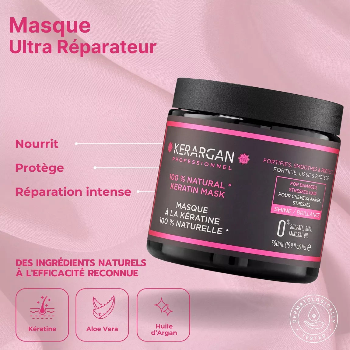 La kératine, cette protéine naturelle, est le pilier de nos cheveux. En l'associant à des ingrédients naturels choisis avec soin, notre duo Kerargan promet une transformation visible de votre chevelure. 🌸🌿