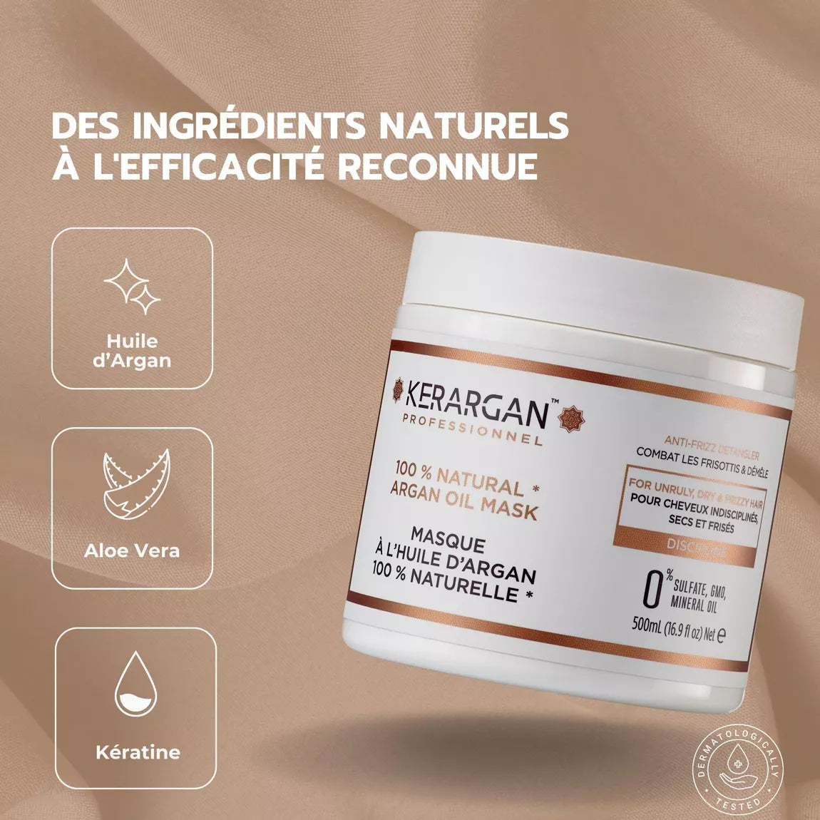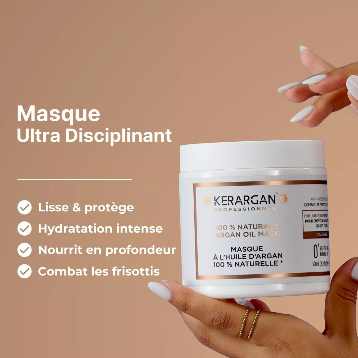 Redonnez vie à vos cheveux grâce au Masque Disciplinant Kerargan à l'Huile d'Argan 🌼🌟. Une fusion parfaite d'ingrédients naturels, ce masque est votre allié pour des cheveux magnifiquement lisses et nourris.