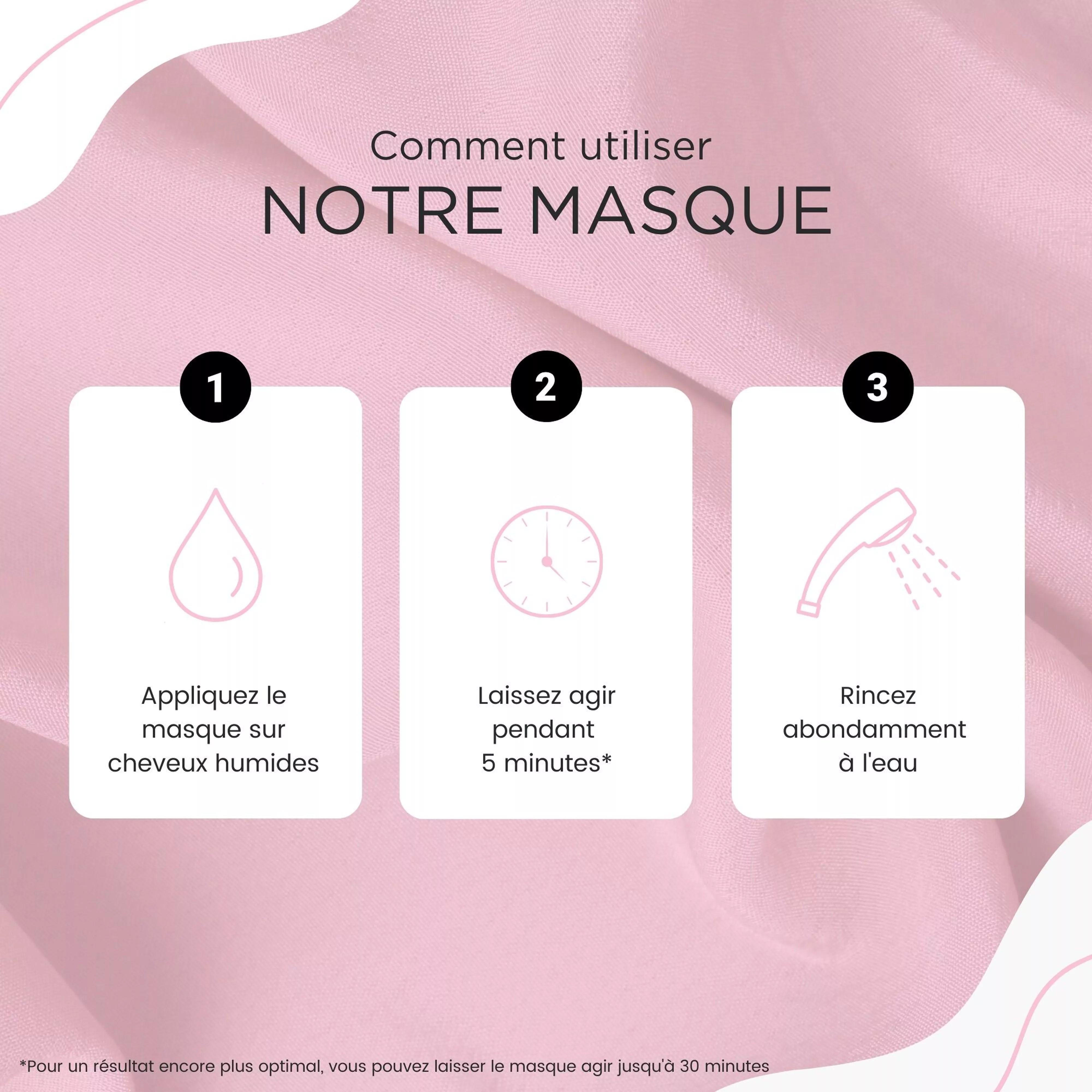 Appliquez le masque sur les cheveux humides, sur la longueur et les pointes. Attendez 5 minutes et rincez abondamment à l'eau.