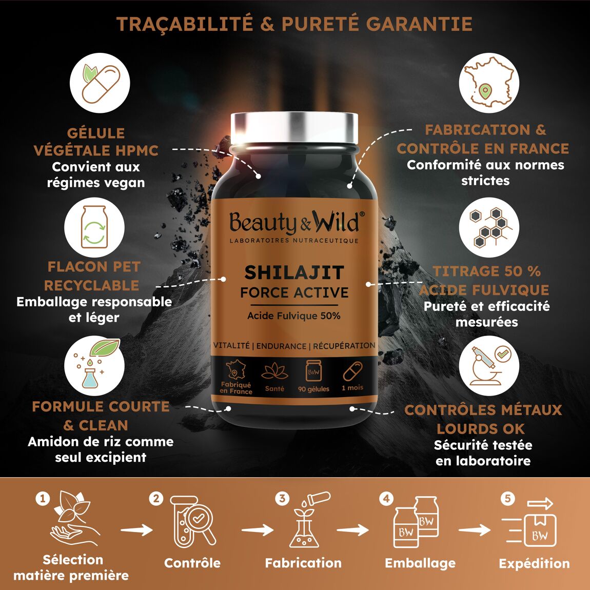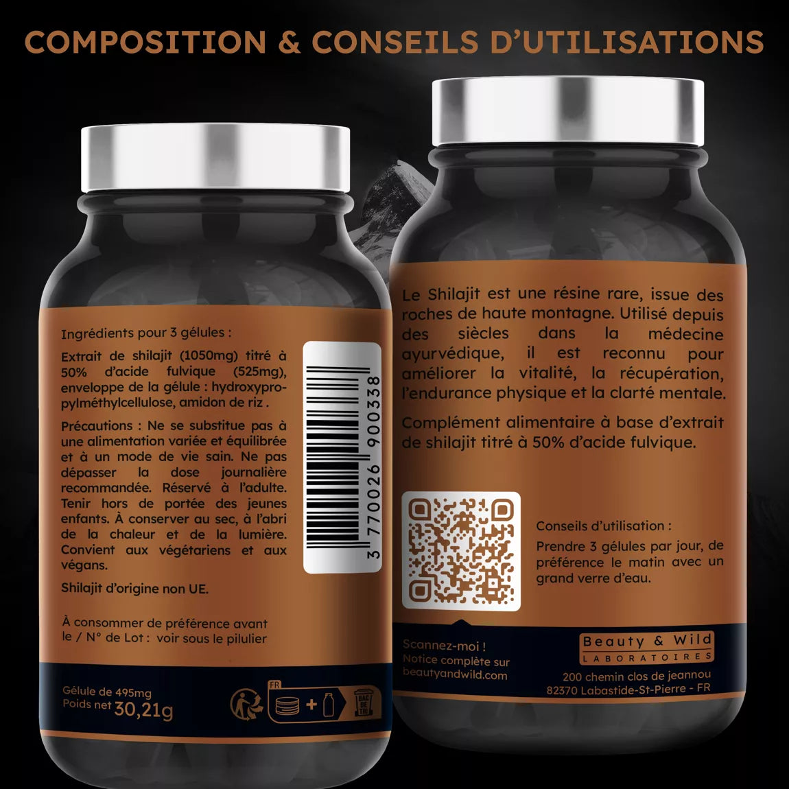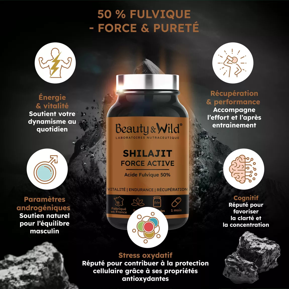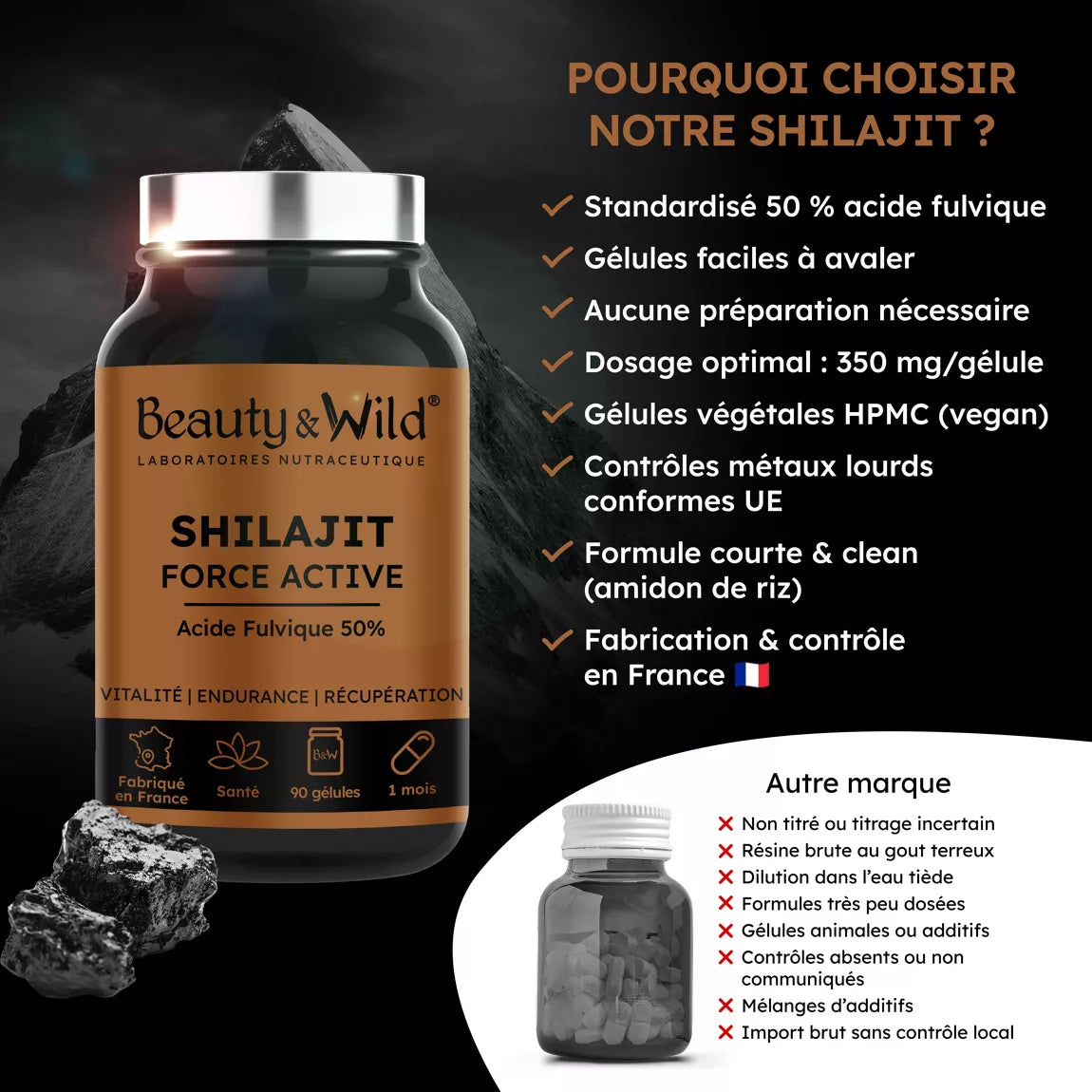 Nouveauté ! Shilajit Pur 1050 mg – 50% Acide Fulvique – 90 Gélules Végétales – Énergie, Vitalité & Performance